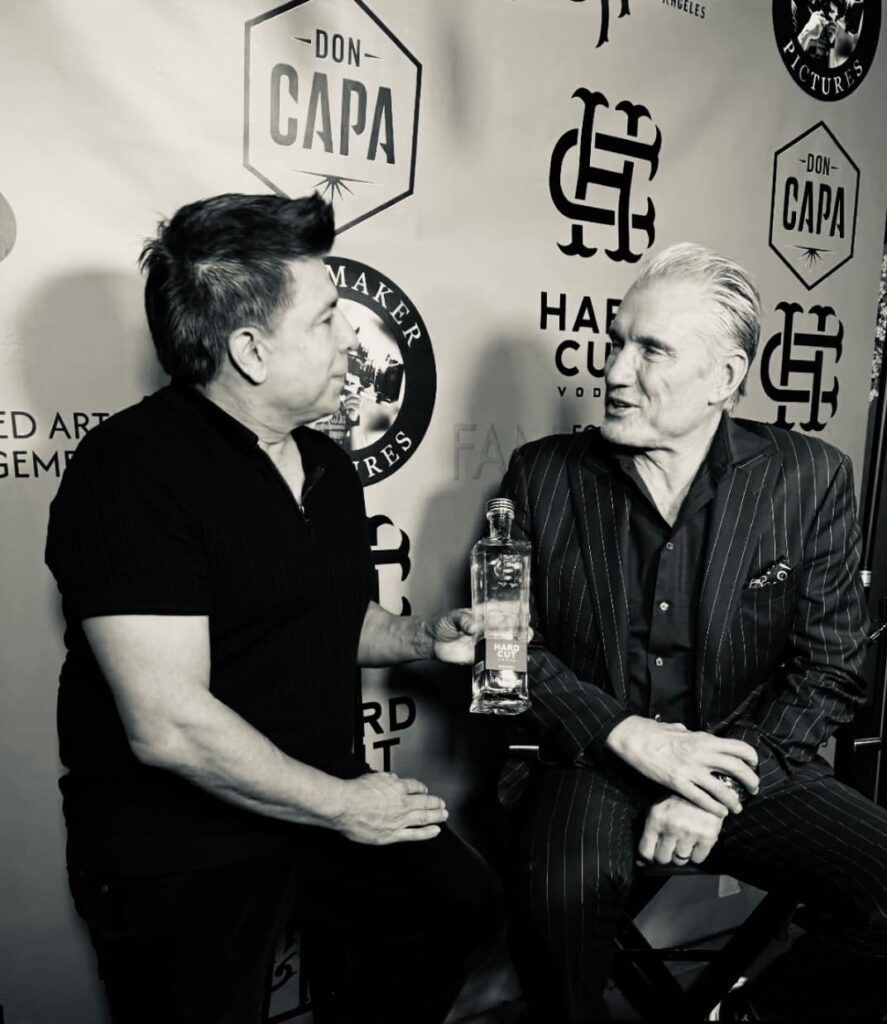 At the personal request of Emma Krokdal, Dolph Lundgren’s wife and co-founder of Hard Cut Vodka, Fabrice Sopoglian with the support of Dolph Lundgren’s publicist, Jaclyn Mallon designed and produced a tailor-made event bringing together American media and key figures from the film and entertainment world. Major outlets such as Fox, The Buzz, and US Weekly were in attendance, alongside Canal+, covering the event for French audiences.